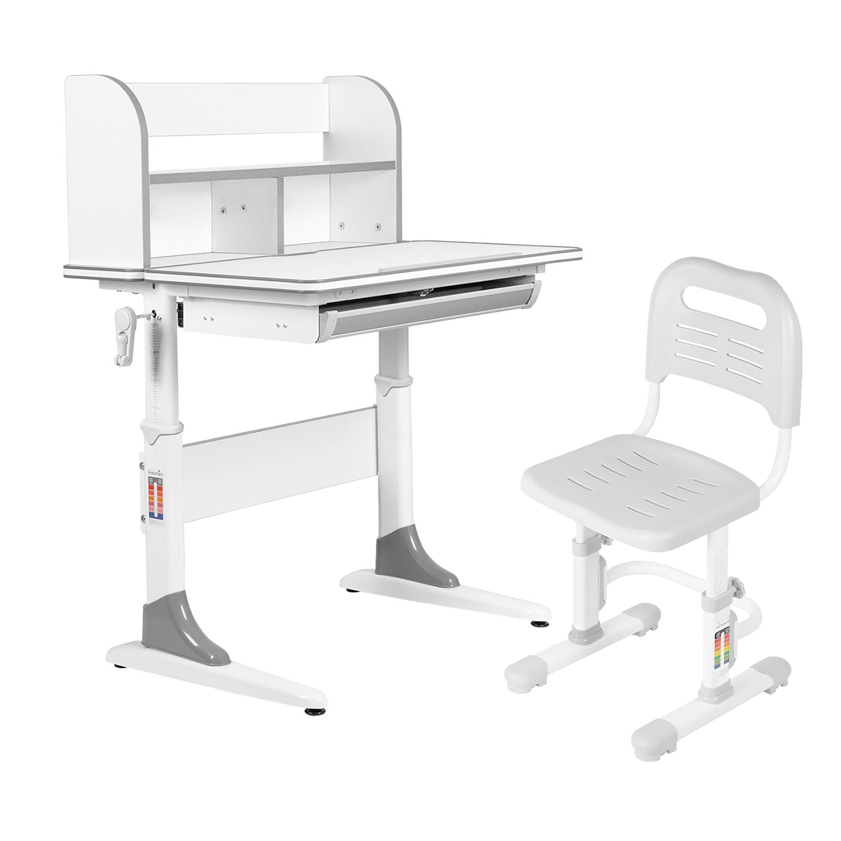 Эргономичный комплект Anatomica Study-80 Lux состоит из растущей парты Anatomica Study-80 Lux и растущего стула Anatomica Lux-01 или Anatomica Lux-02 (на выбор), уже идущие в составе. Главной особенностью комплекта является возможность "роста" вместе с ребенком. Комплект подойдет как для дошкольника, так и школьника, который учится в начальной или средней школе. Парта оснащена удобной вместительной надстройкой, куда легко поместятся книги, тетради или небольшой монитор. Также она оснащена выдвижным ящиком для правильной организации комфортного рабочего места - в такой ящик можно положить тетради, книги, ручки, карандаши и прочие канцелярские принадлежности. При установке парты на неровный пол предусмотрены специальные нивелирующие подпятники, которые помогут парте не шататься. Важной особенность парты является и возможность занятий как сидя, так и стоя, благодаря наклонной столешнице - она может изменять свой угол наклона от 0 до 70 градусов. За такой столешницей можно заниматься как письмом, чтением и черчением, так и рисованием, сидя или стоя, что особенно полезно для осанки и правильного кровообращения. Не скатываться тетрадям или книге под наклоном поможет специальный бортик-ограничитель, расположенный в нижней части столешницы. Антибликовое покрытие защищает глаза ребенка от усталости и отражений света, а сама столешница надежно защищена от повреждений. Закругленные края парты исключают возможность ранения ребенка.